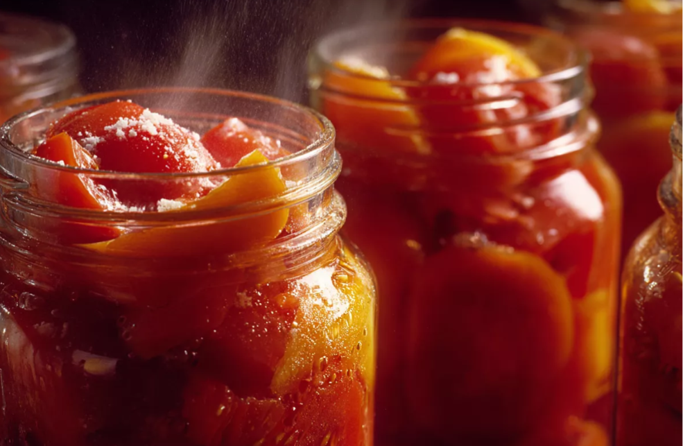 Удобный вариант — автоклав: банки с помидорами погружают в кипящую воду и нагревают до 115–117 °C в течение 15 минут. После охлаждения банки становятся готовым запасом для зимних блюд.