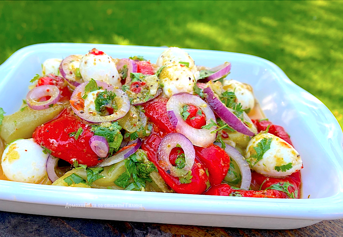 Сочетание сладких перцев, мягкой моцареллы и свежей зелени создаёт баланс сладости, солёности и кислоты, который подходит как к домашнему ужину, так и к дружескому застолью.