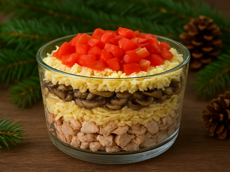 Когда приходит желание удивить гостей вкусным и сытным блюдом, салат «Чикаго» оказывается настоящей находкой. Сочетая в себе слои копченой курицы, обжаренных грибов, сыра и свежих овощей, это блюдо не требует излишних затрат времени и сил. Удобный в приготовлении, салат легко собрать из доступных ингредиентов, которые почти всегда под рукой. Этот рецепт позволяет создать эффектное угощение без лишней суеты.