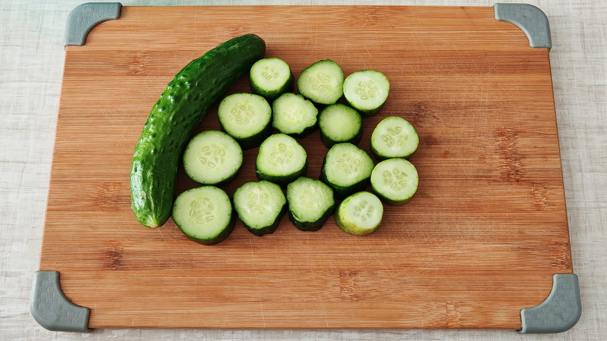 Для начала стоит замочить огурцы в холодной воде на два часа. После этого их необходимо нарезать на равные кусочки, чтобы толщина была одинаковой и обеспечивала равномерное маринование.