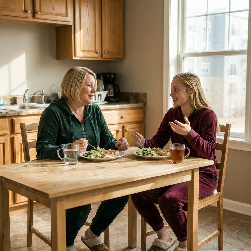 Аня предложила вместе поужинать — это словно знак связи, где взаимодействие не просто обязанность, а выбор. И как важно, что дочери это становится заметным. Ужин стал не просто совместным приёмом пищи, а настоящей общей традицией.