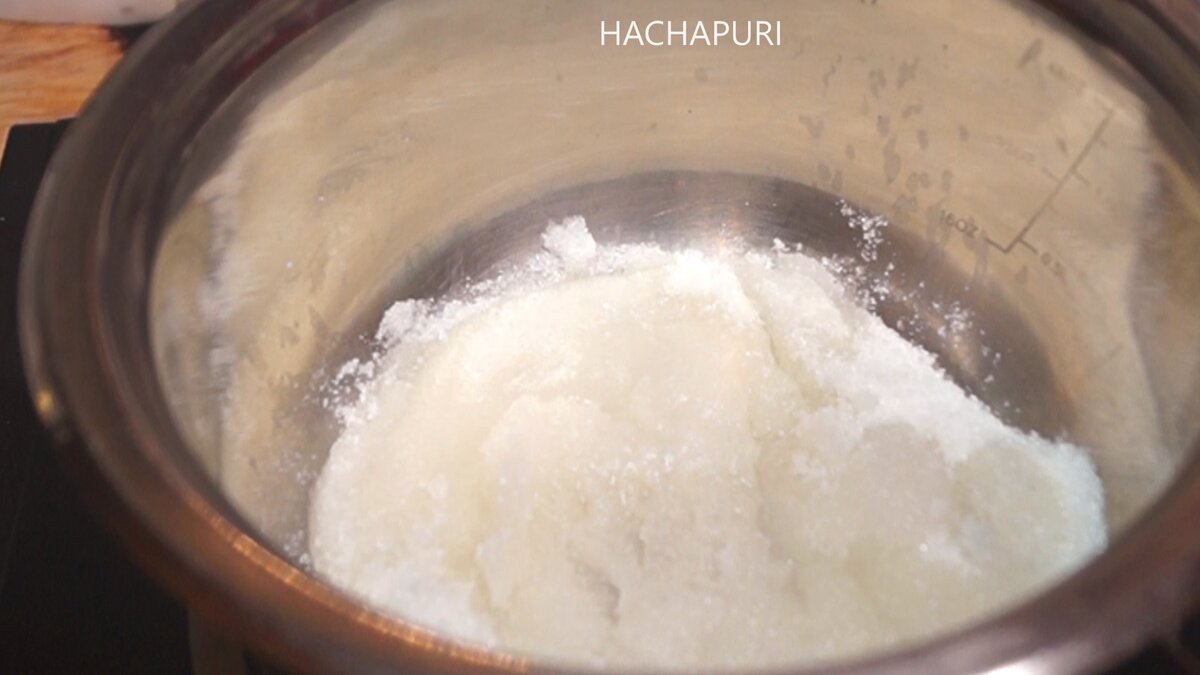 - Когда масса становится жидкой и кристаллы растапливаются, осторожно добавляется сливочное масло.