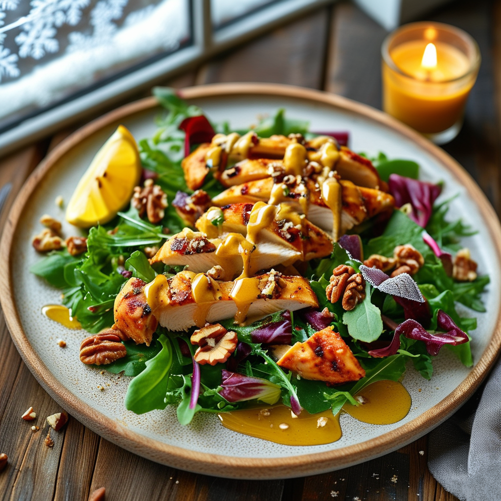 - Медово-горчичный куриный салат: Салат, в котором нежная куриная грудка сочетается с хрустящими листьями салата и медовой заправкой. Простой и одновременно изысканный вариант для обеда или ужина.