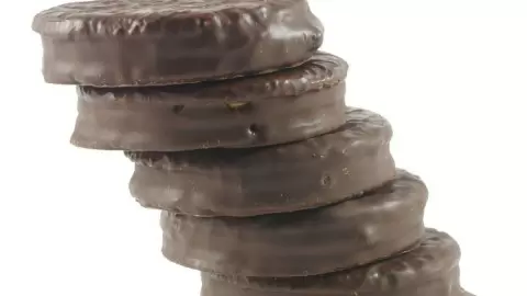 - Бисквитное печенье с протеином в шоколадной глазури;