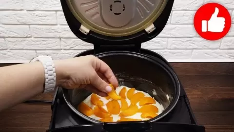 На поверхность запеканки необходимо выложить четвертинки абрикосов. Кстати, можно экспериментировать и добавить вместо абрикосов другие фрукты или ягоды по вкусу.