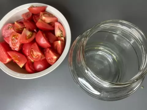 - Тщательно вымыть помидоры и нарезать их на четвертинки.