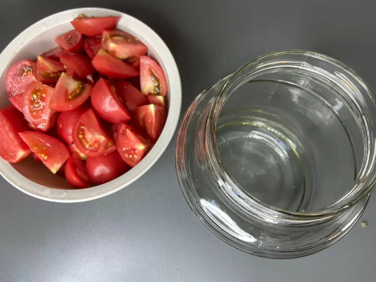 Подходящие помидоры для этого рецепта — мелкие и плотные, идеальным вариантом станут сорта «сливка». Далее процесс подготовки включает несколько простых шагов: