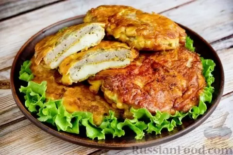 - Отбивные "Обжорки". Это аппетитное сочетание куриного бедра и свиного фарша, обжаренное в хрустящем сметанном кляре, станет отличным угощением для гостей. Просто и очень вкусно!