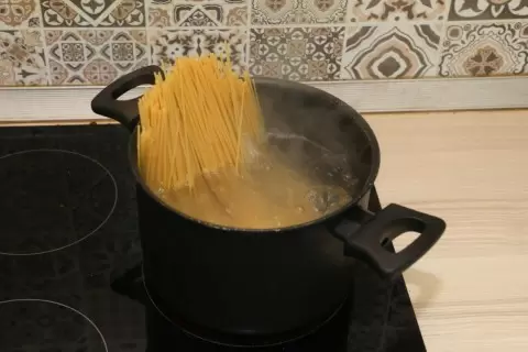 - При варке качественные спагетти сохраняют форму, а вода становится прозрачной.