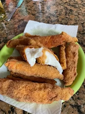 Сначала нарезается рыба на палочки размером около 8 см в длину и 2 см в ширину. Укладываются кусочки на блюдо. Чтобы усилить вкус, рекомендуется приправить рыбу солью и специями.