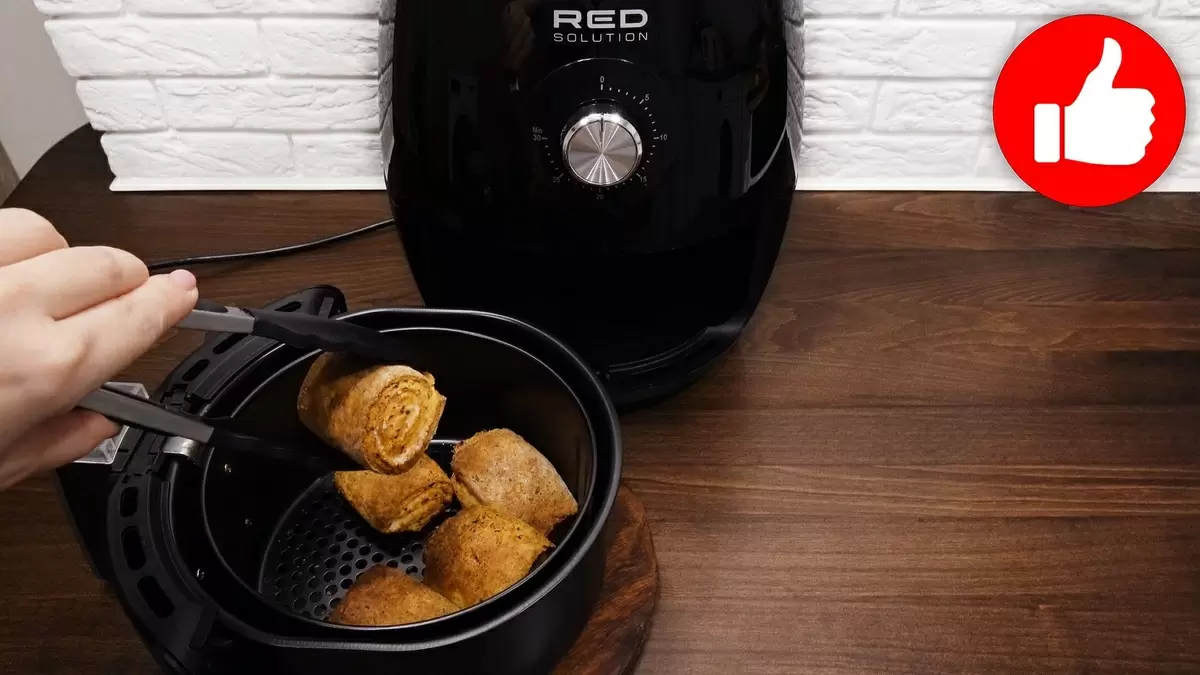 3. Рулетики выкладывают в чашу аэрогриля и готовят при температуре 180°C в течение 15 минут. Ароматные булочки будут готовы в считанные минуты!