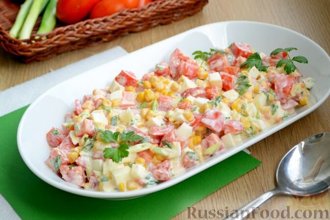 Слоеный салат с курицей и помидорами