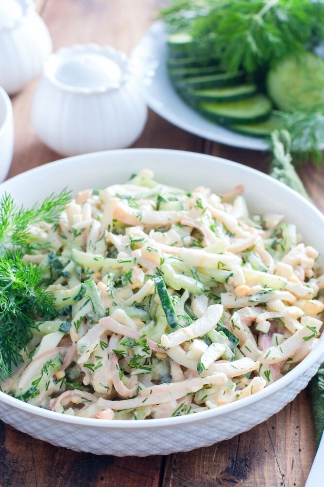 Если вы ищете простой и в то же время изысканный рецепт, который украсит ваш стол, этот салат с кальмарами и свежими огурцами — идеальный вариант. Легкий, свежий и питательный, он станет настоящим открытием для любителей морепродуктов.