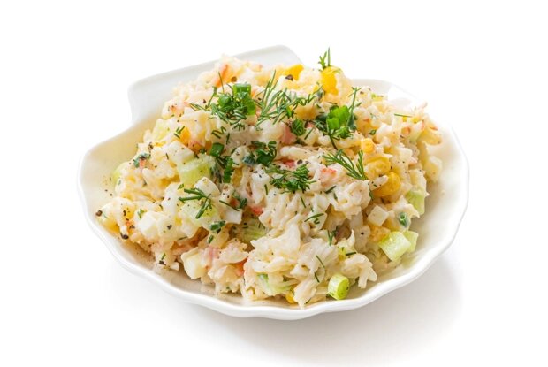 Этот салат является настоящей звездой любого праздничного стола. Он сочетает в себе яркие вкусы крабовых палочек, куриных яиц, сладкой кукурузы и свежих овощей. Простота приготовления делает его незаменимым в кулинарной копилке каждой семьи.