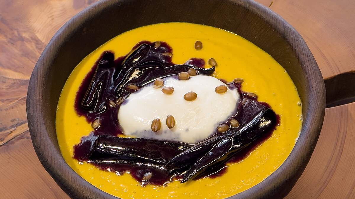 Начать стоит с замачивания пшеницы в воде на 12 часов, а затем отваривания ее до полной готовности. Тем временем морковь можно запечь в духовке. В сковороде на растительном масле обжарить до золотистой корочки лук. Обжаренный лук и запеченную морковь переместить в чашу блендера, приправить по вкусу солью, перцем, добавить чабрец и влить сливки. Все вместе перебить до получения однородной массы.