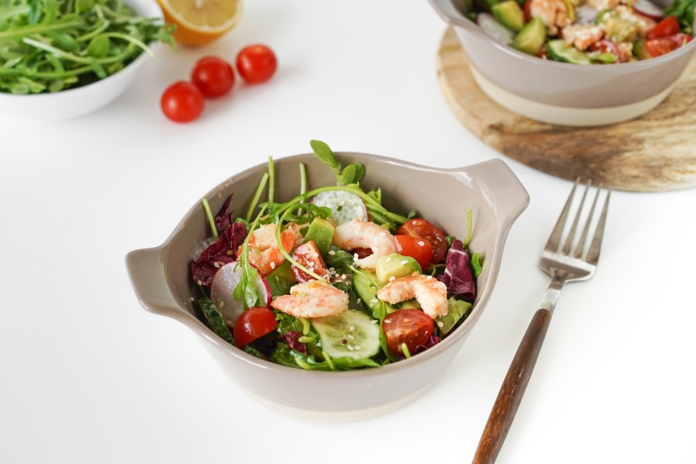 Представляем вам отличный вариант для ужина в жаркий день: освежающий салат с креветками и авокадо. Всего 15 минут — и блюдо готово! Минимум усилий, максимум пользы и эстетического удовольствия, ведь этот салат красиво смотрится на любом столе.