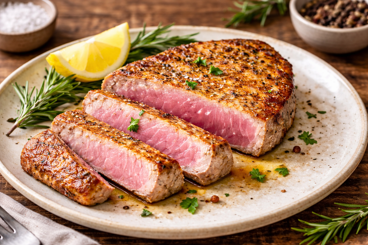 Необходима ли маринация? Нет, тунец прекрасно раскрывается с минимальным набором приправ. Можно ли готовить замороженный стейк? Лучше разморозить его перед готовкой, чтобы избежать холодного центра. Нужно ли добиваться полной прожарки внутри? Немного розоватая середина — это нормально для тунца. Соусы лучше подавать отдельно, чтобы не нарушить структуру блюда.