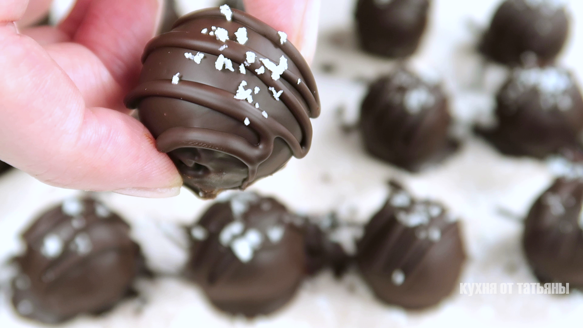 После обмакивания, положите конфеты на пергаментную бумагу. Можно использовать остатки шоколада для создания небольших декорирующих узоров на конфетах, помещая его в кондитерский мешок или просто отрезав уголок пакетика. Сверху посыпьте кокосовой стружкой и оставьте на 5-10 минут в морозильнике для окончательной застывки. В итоге, получается потрясающий десерт, который уместно подать к чаю!