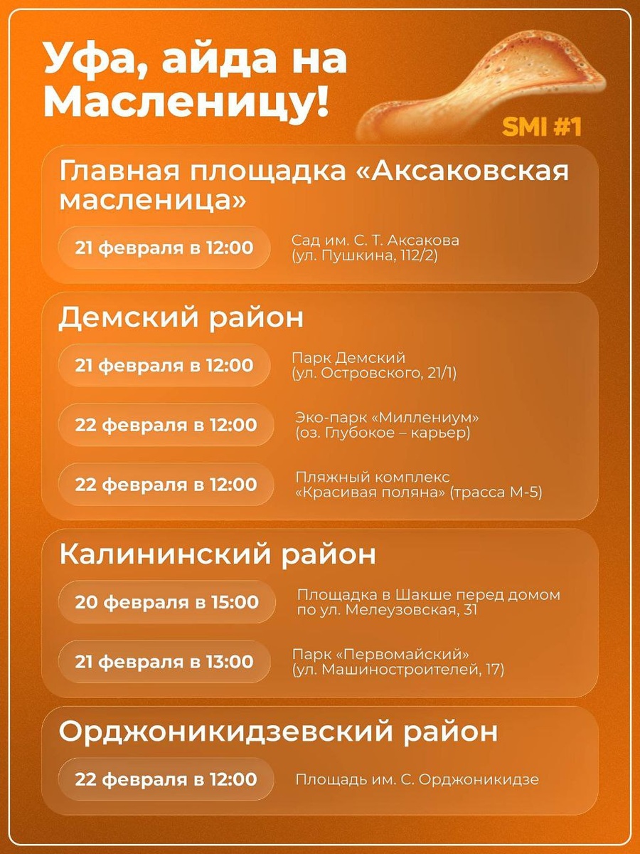 Скоро в Уфе разгорится бурное празднование Масленицы, и каждый район города подготовил необычные события для жителей и гостей. Это время для веселья, угощений и традиционных гуляний на свежем воздухе.