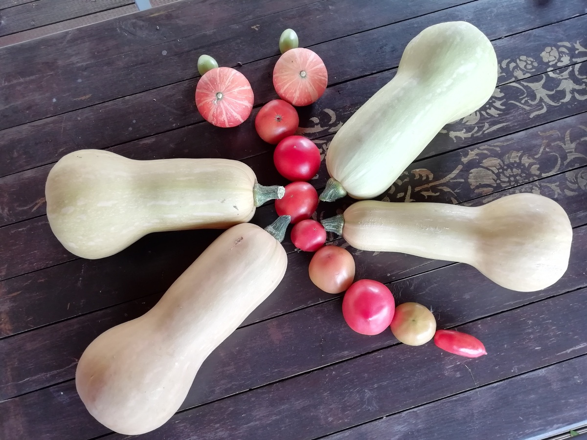 В итоге единственный куст выдал четыре тыквы. Обещанные производителем размеры до 800 граммов явно не совпадали с реальностью, так как самые маленькие плоды весили 1.5 кг, а три более зрелых — до 2.3 кг.