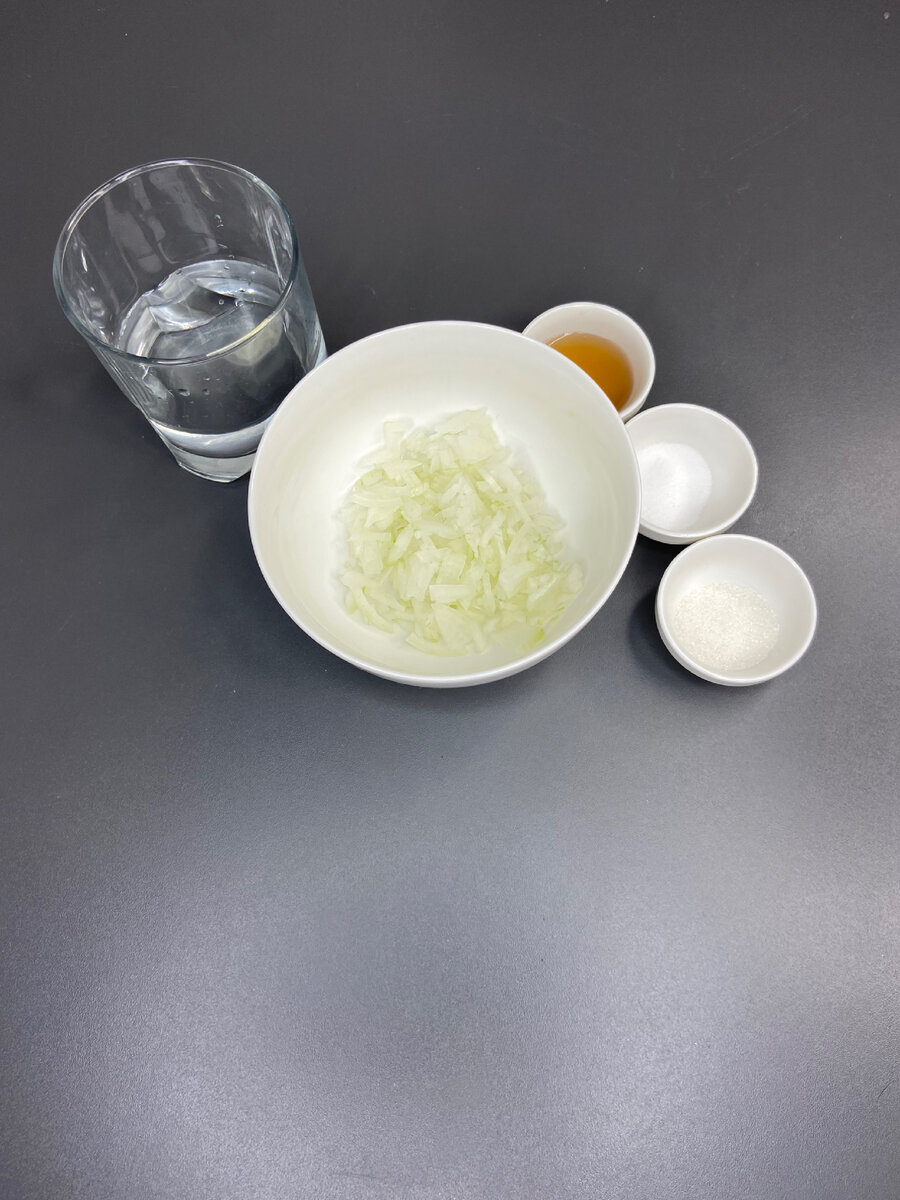 В его составе присутствует репчатый лук, вкус которого можно смягчить маринованием. Для этого лук необходимо нарезать кубиками и замариновать в смеси из сахара, соли, яблочного уксуса и воды. В качестве альтернативного подхода можно использовать сок лимона.