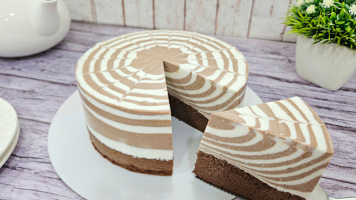 3. Для желейного слоя замочить желатин в воде, затем подогреть до растворения. В миске соединить творог, рикотту, кефир и подсластитель, пробить до однородности. Влить желатин, разделить массу на две части и одну из них окрасить какао.