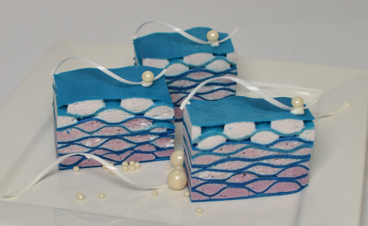 Представленный десерт становится настоящим украшением стола, идеально вписываясь в праздничное меню или витрины кондитерских. Он говорит на языке современной гастрономии — чисто, стильно и вкусно. Рецепт «Морозной вуали» включает рисовые коржи, ягодный и ванильный кремы, а также великолепную глазурь.