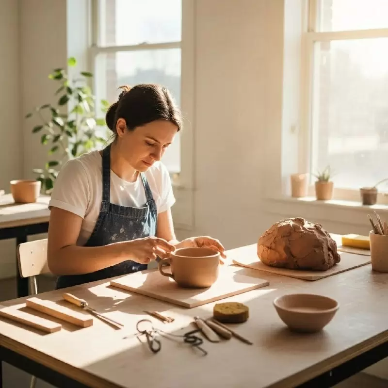 - Личное пространство: Каждый резидент получает свой рабочий стол и гончарный круг.
