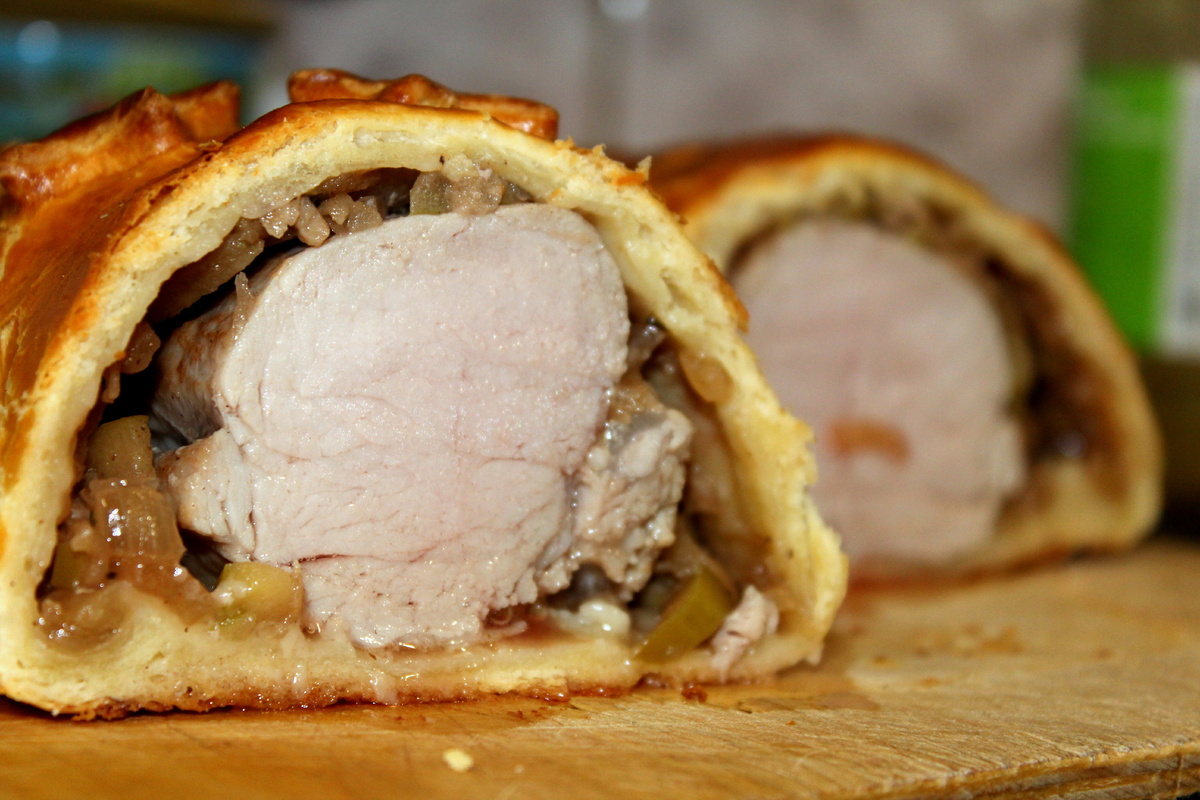 Это блюдо — идеальное сочетание нежной свинины и сладости яблок, завернутое в хрустящее слоеное тесто. Готовится легко, а результат - впечатляющий. Подходящее для любого времени года, это угощение непременно порадует всех гостей.